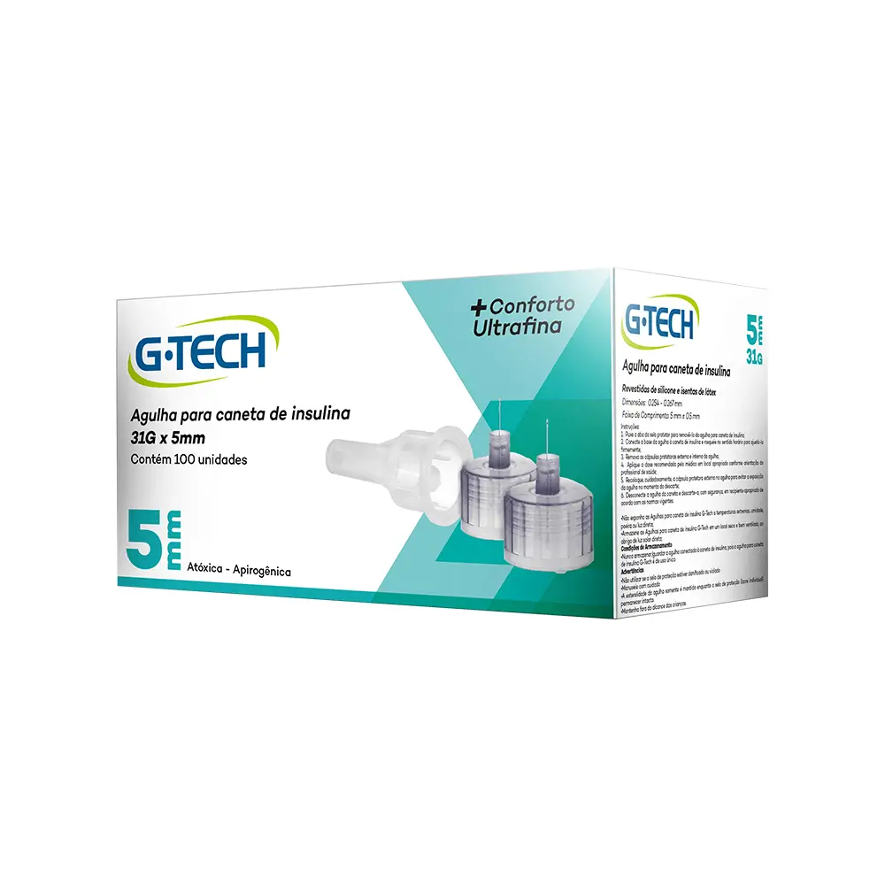 As Agulhas para caneta de insulina G-Tech foram desenvolvidas com as melhores tecnologias, buscando maior conforto, menos dor e maior facilidade no uso. Compatível com os principais modelos de canetas de insulina do mercado (como as das marcas Novo Nordisk, Sanofi, Eli Lilly, Owen Mumford, BD, entre outras), seu design permite maior conforto na hora de realizar a incisão. Além disso, possuem ótimo fluxo, facilitando a administração e a correta dosagem da insulina.