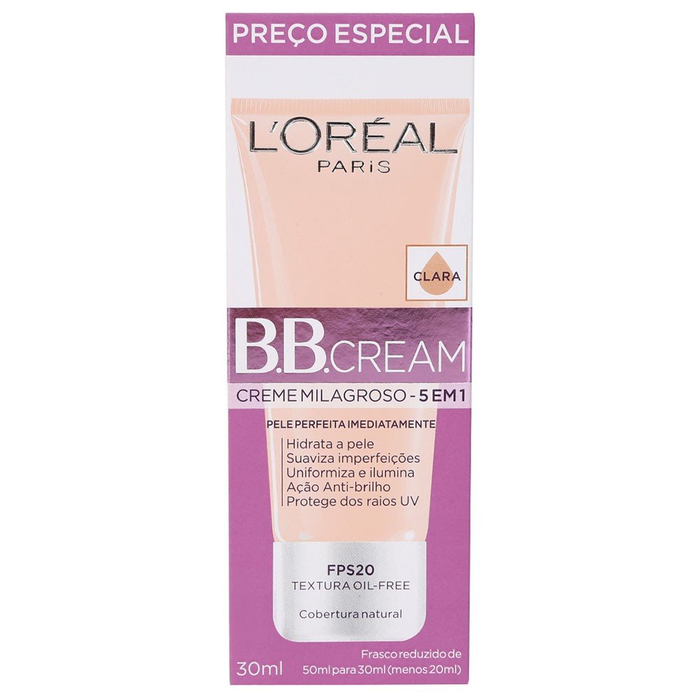 BB Cream L'Oréal FPS 20 Creme Milagroso - 5 em 1 Clara 50mL
