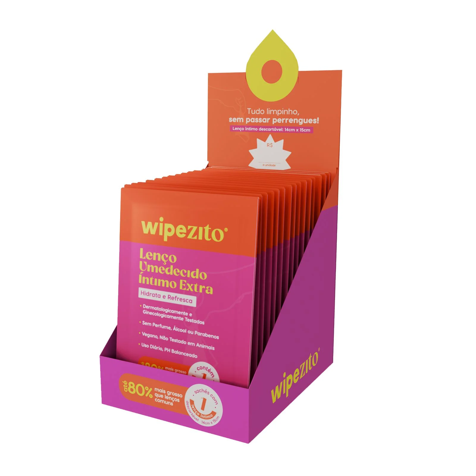 Wipezito é o Lenço Umedecido Íntimo Extra Unitário da Pipizito. Extra porque ele é até 80% mais grosso que os lenços umedecidos comuns. Perfeito pra você levar junto com os seus pipizitos (cabem vários dentro da case ou do porta pipizito), cada sachê tem 10cm de altura e 7cm de largura. Ele serve para você se limpar depois de fazer xixi e também para você limpar seu pipizito reutilizável (e seus toys também!).