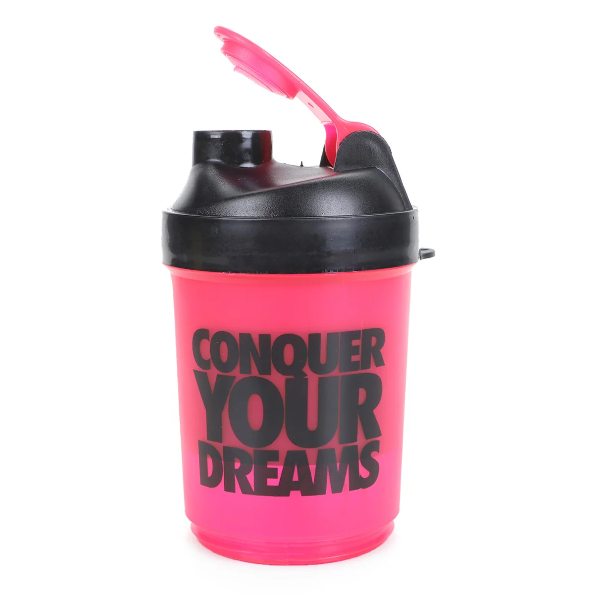A Coqueleteira Conquer your Dreams da iridium labs é ideal para te acompanhar nos seus treinos, com design moderno, 3 compartimentos e tampa anti-vazamento.