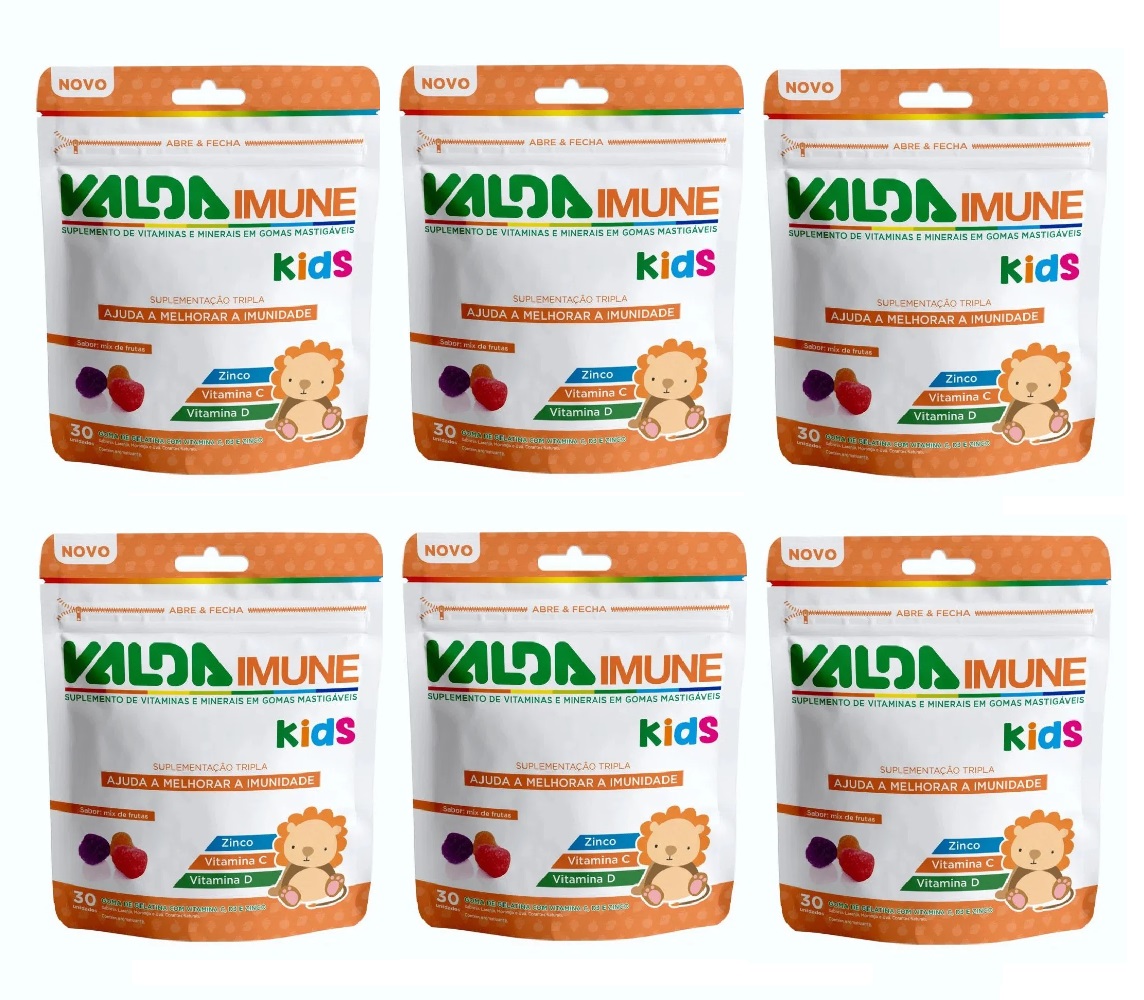 Suplemento Alimentar Em Gomas Mastigáveis Valda Imune Kids Display Com 6 Sachês De 50g Cada