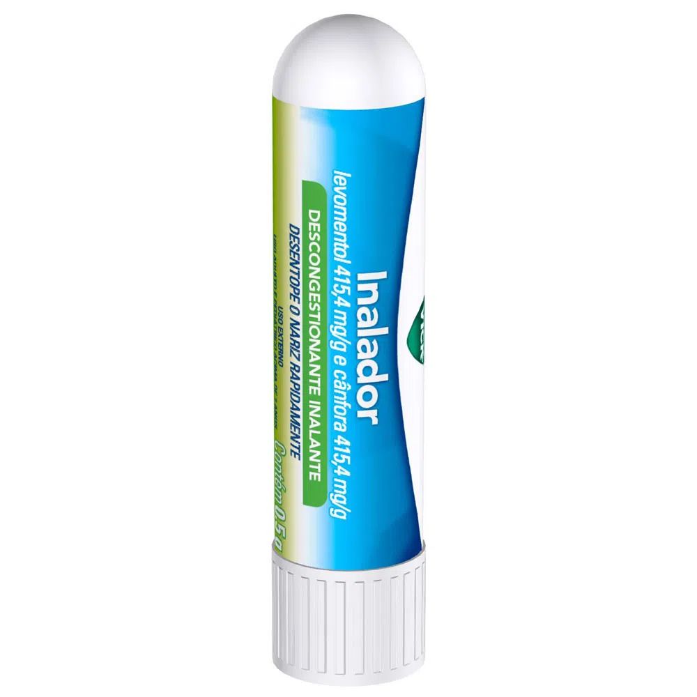 Inalador Vick Bastão para a congestão nasal. O mentol ativa receptores sensoriais nas vias nasais dando uma sensação de frescor e descongestiva.