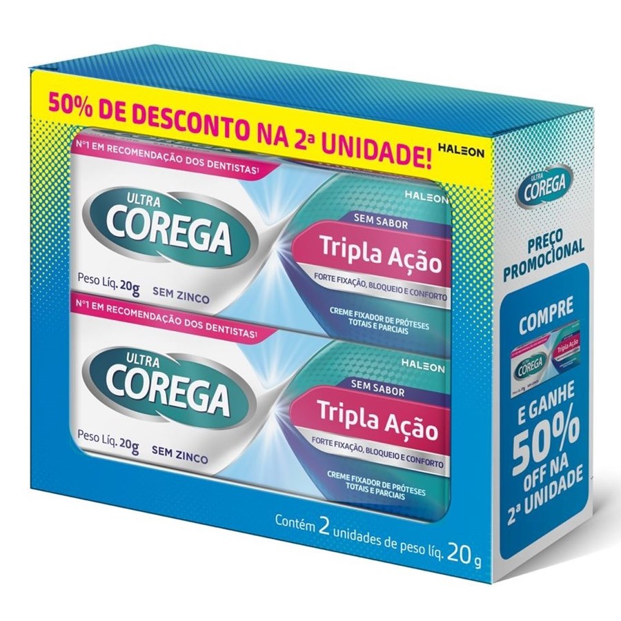 Ultra Corega Tripla Ação Creme Fixador De Próteses possui: forte fixação, bloqueio e conforto para você aproveitar ainda mais os momentos do dia a dia. Ajuda a bloquear as partículas de comida que podem incomodar sua prótese total ou parcial e irritar suas gengivas.