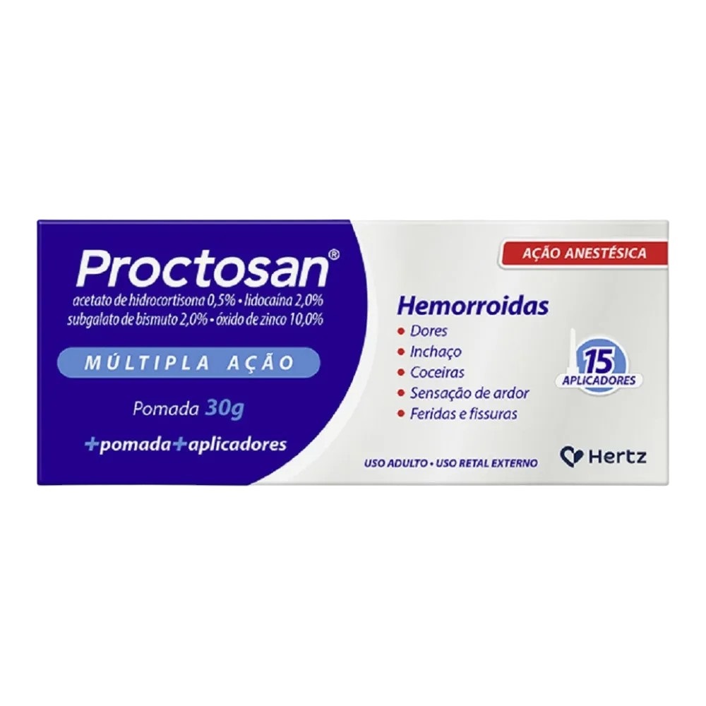 Proctosan é uma pomada dermatológica anti-hemorroidal de uso tópico. Uso retal e uso adulto