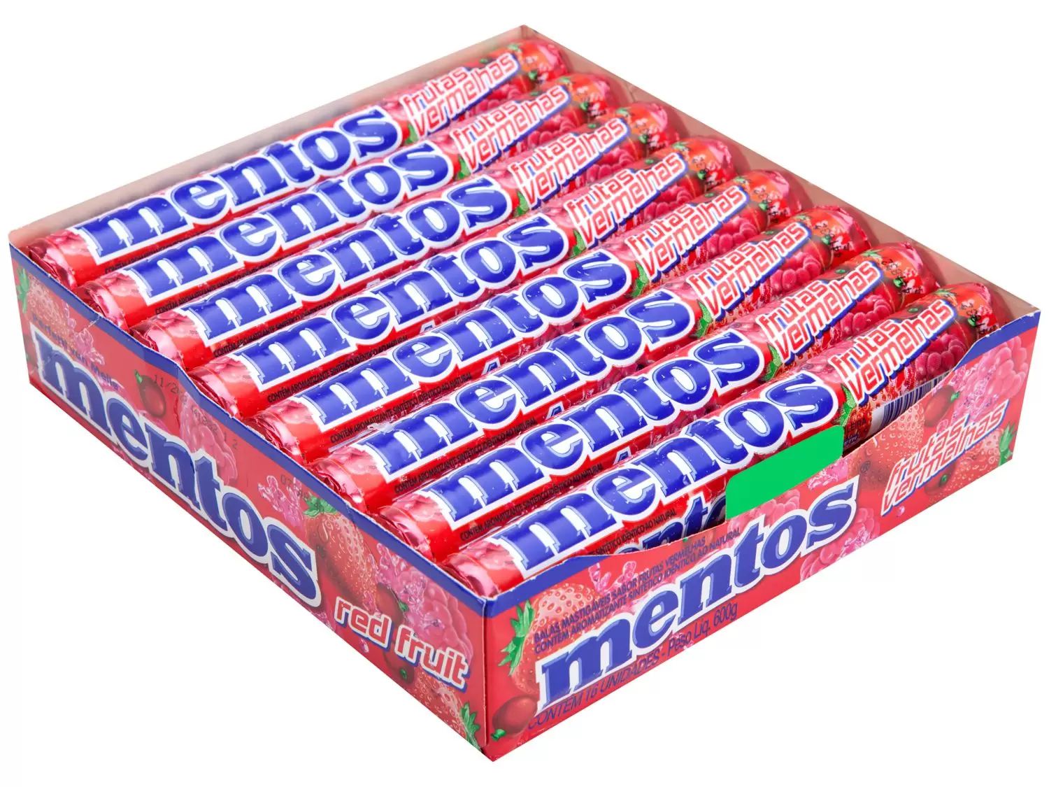 Bala Mastigável Mentos Frutas Vermelhas Display Com 16 Unidades De 37,5g Cada