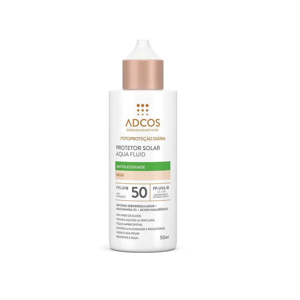 Protetor Solar Facial Adcos Aqua Fluid FPS50 Cor Beige 50ml
