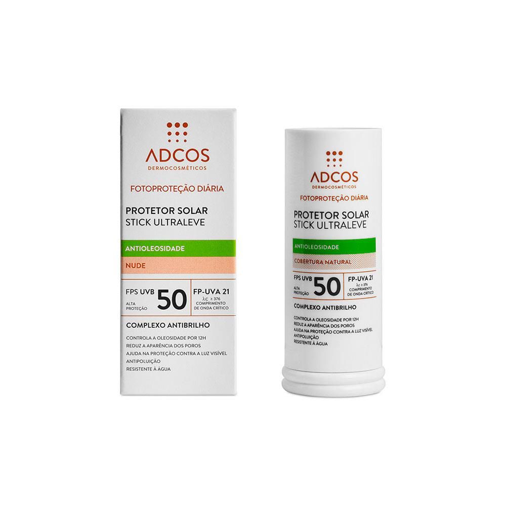 Protetor Solar Facial Adcos Stick Ultraleve Antioleosidade FPS50 Cor Nude 15g