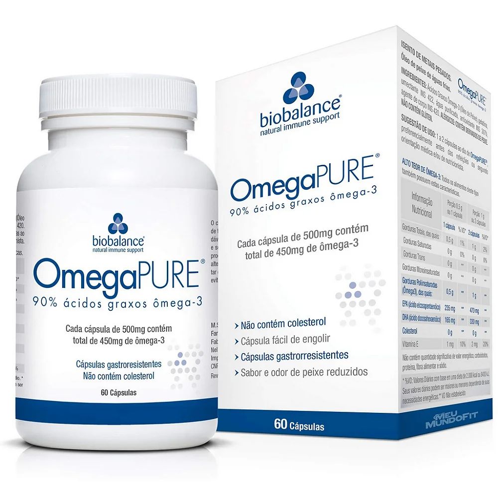 OmegaPure é um suplemento alimentar com 90% de ácidos graxos ômega-3 em cápsulas gastrorresistentese sem colesterol.