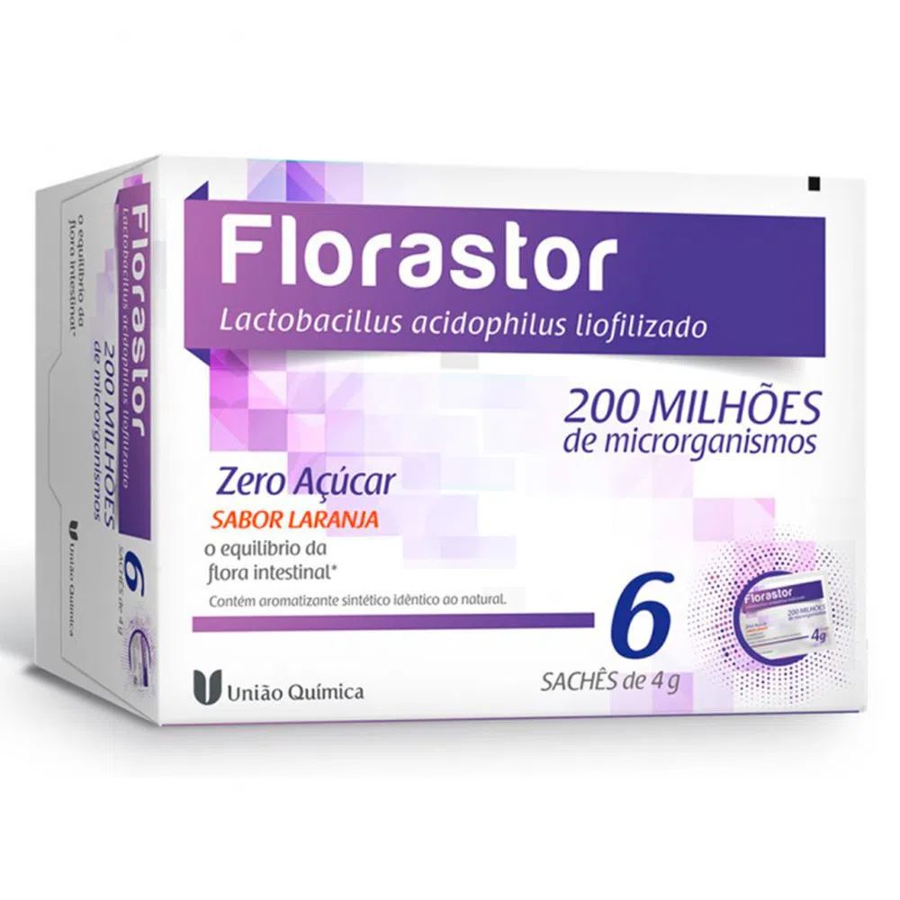 Suplemento Probiótico Em Pó Florastor Sabor Laranja Com 6 Sachês De 4g Cada