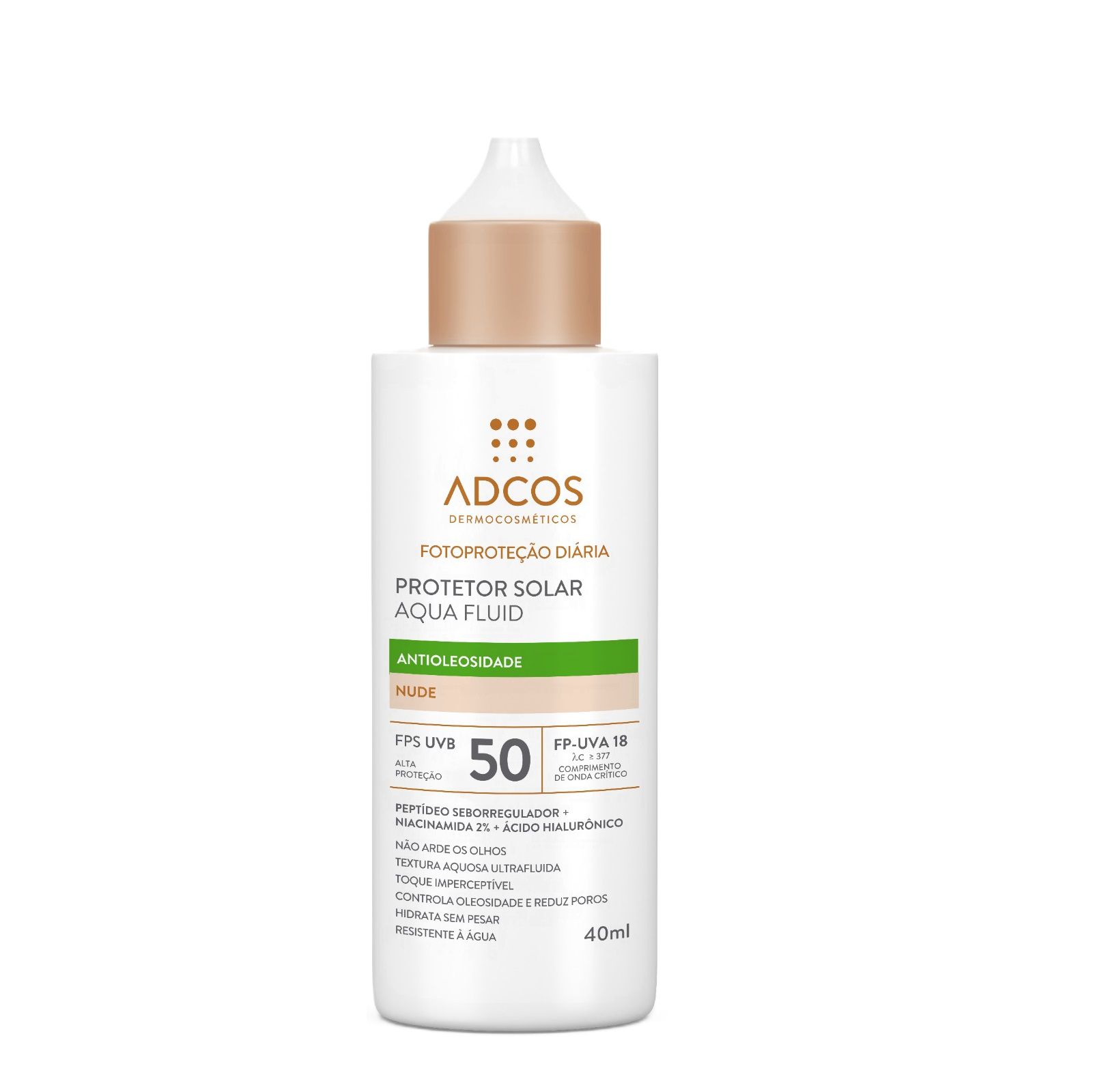Protetor Solar Facial Adcos Aqua Fluid Antioleosidade FPS50 Nude 40ml