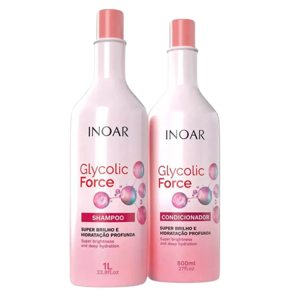 Shampoo + Condicionador Glicolic Force Inoar super brilho e hidratação profunda.