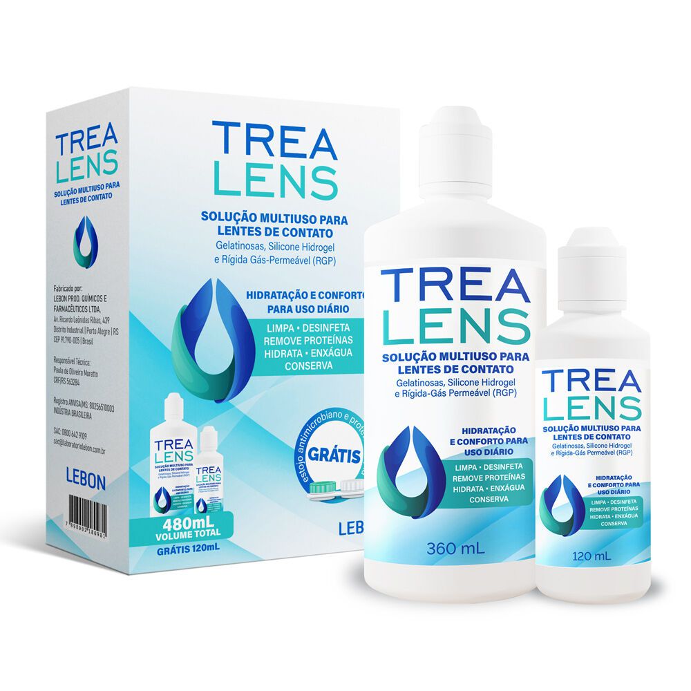 1 frasco de solução Trealens multiuso 120ml;