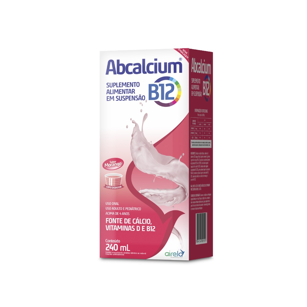 Abcalcium B12 Sabor Morango é um suplemento alimentar em gotas fonte de cálcio vitaminas D e B12.