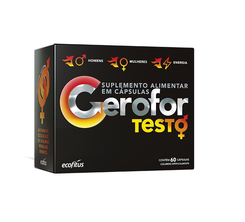 Gerofor Testo é um suplemento alimentar com vitaminas B1, B2, B3, B5, B6, B7, B12 e minerais.