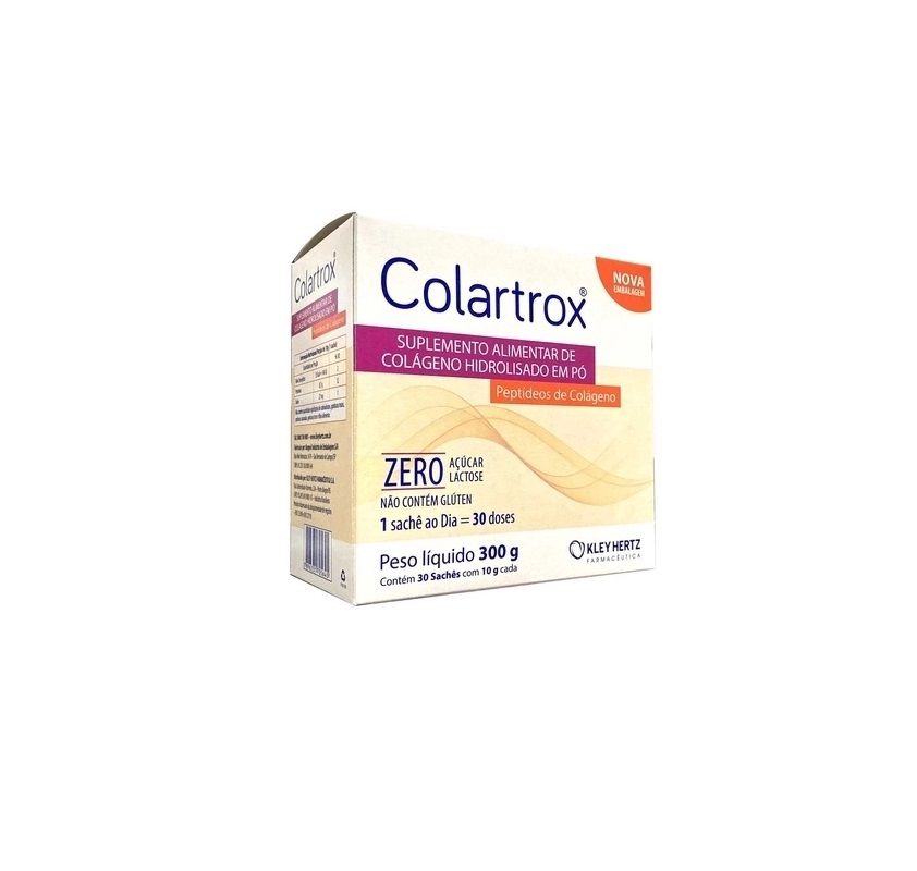 Colartrox é um suplemento à base de peptídeos de colágeno hidrolisado em pó. Não contém açúcar, lactose e glúten em sua fórmula.