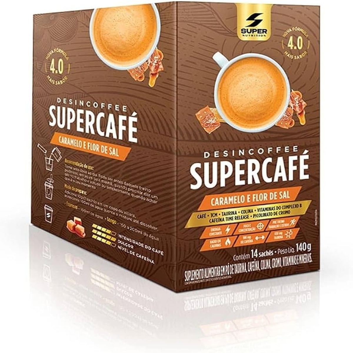 Suplemento alimentar em pó desincoffee supercafé sabor caramelo e flor de sal 14 sachês.
