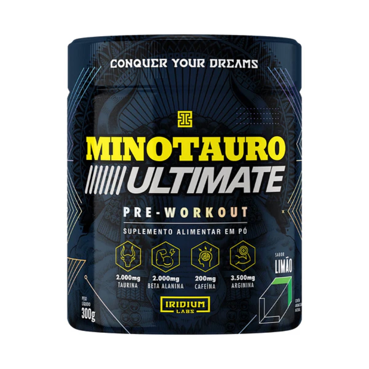 Suplemento alimentar em pó pre-treino minotauro ultimate sabor limão 300g.