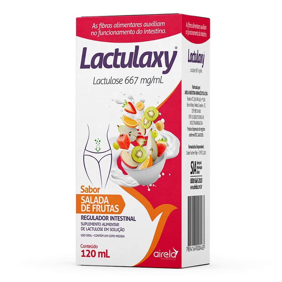 Lactulaxy é um suplemento alimentar de lactose em solução, regulador intestinal sabor salada de frutas.