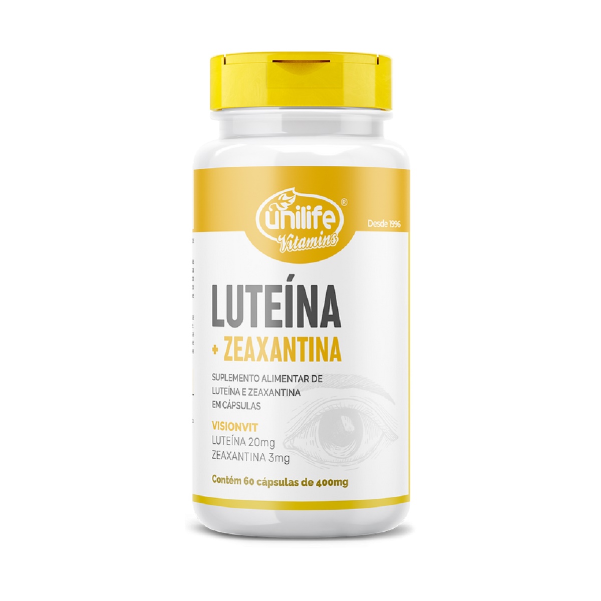 A Luteína e Zeaxantina Unilife Vitamins em cápsulas é um suplemento vegano, desenvolvido a partir de luteína e zeaxantina.