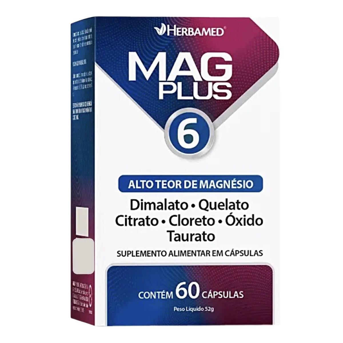 Mag Plus 6 Alto Teor De Magnésio Herbamed é um suplemento alimentar em cápsulas.