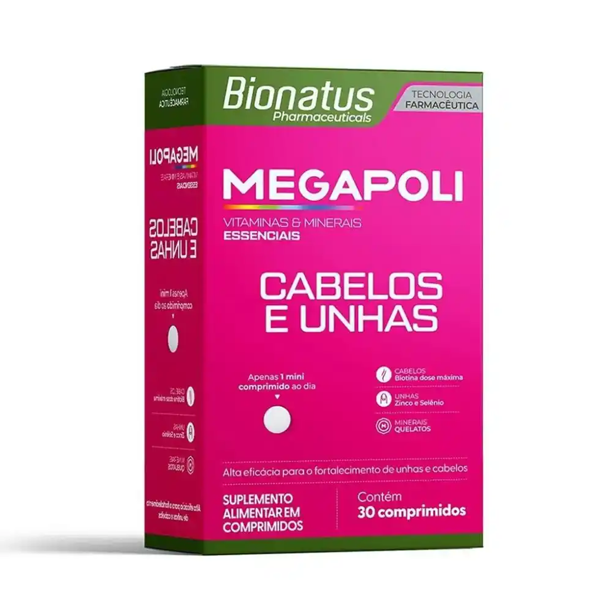 Suplemento alimentar megapoli cabelos e unhas bionatus 30 comprimidos.