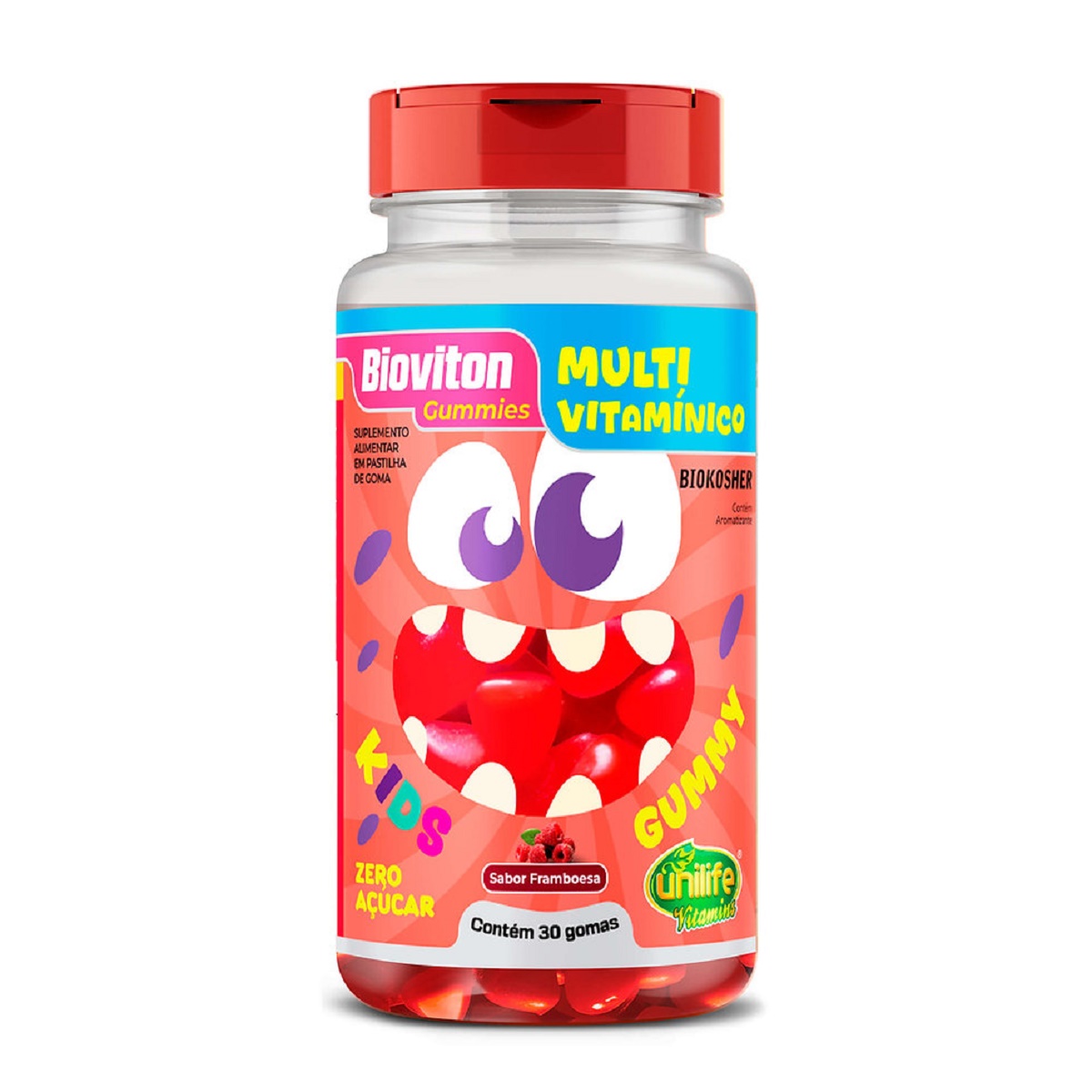 Multivitamínico Bioviton Kids Gummy Sabor Franboesa Unilife em gomas mástigaveis é um suplemento infantil em forma de goma sabor framboesa, desenvolvido para atuar no crescimento e fortalecer a imunidade e complementar a alimentação das crianças.Contém vitaminas e minerais para uma nutrição balanceada.