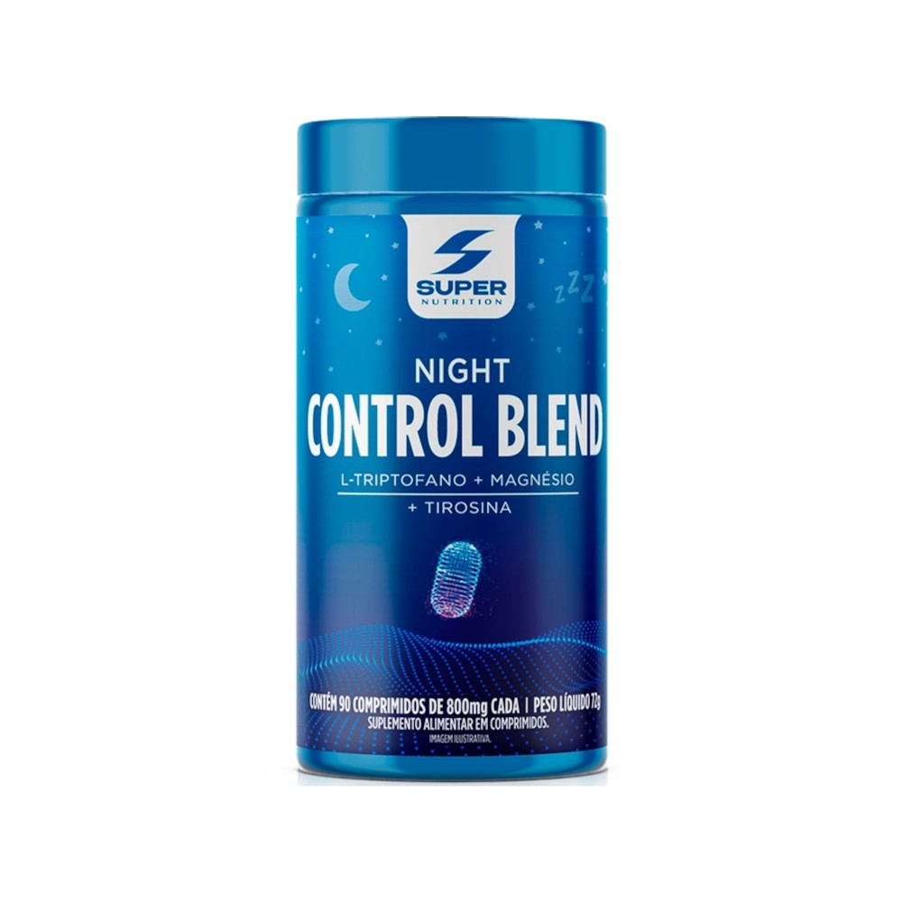 Night Control Blend Super Nutrition é um suplemento alimentar em cápsulas rico em 6 vitaminas do complexo B e C e magnésio, com L-Triptofano, tirosina e mais 3 aminoácidos.