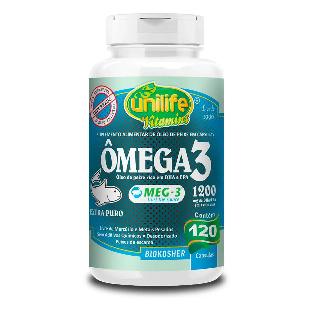 Suplemento alimentar de óleo de peixe em cápsulas.