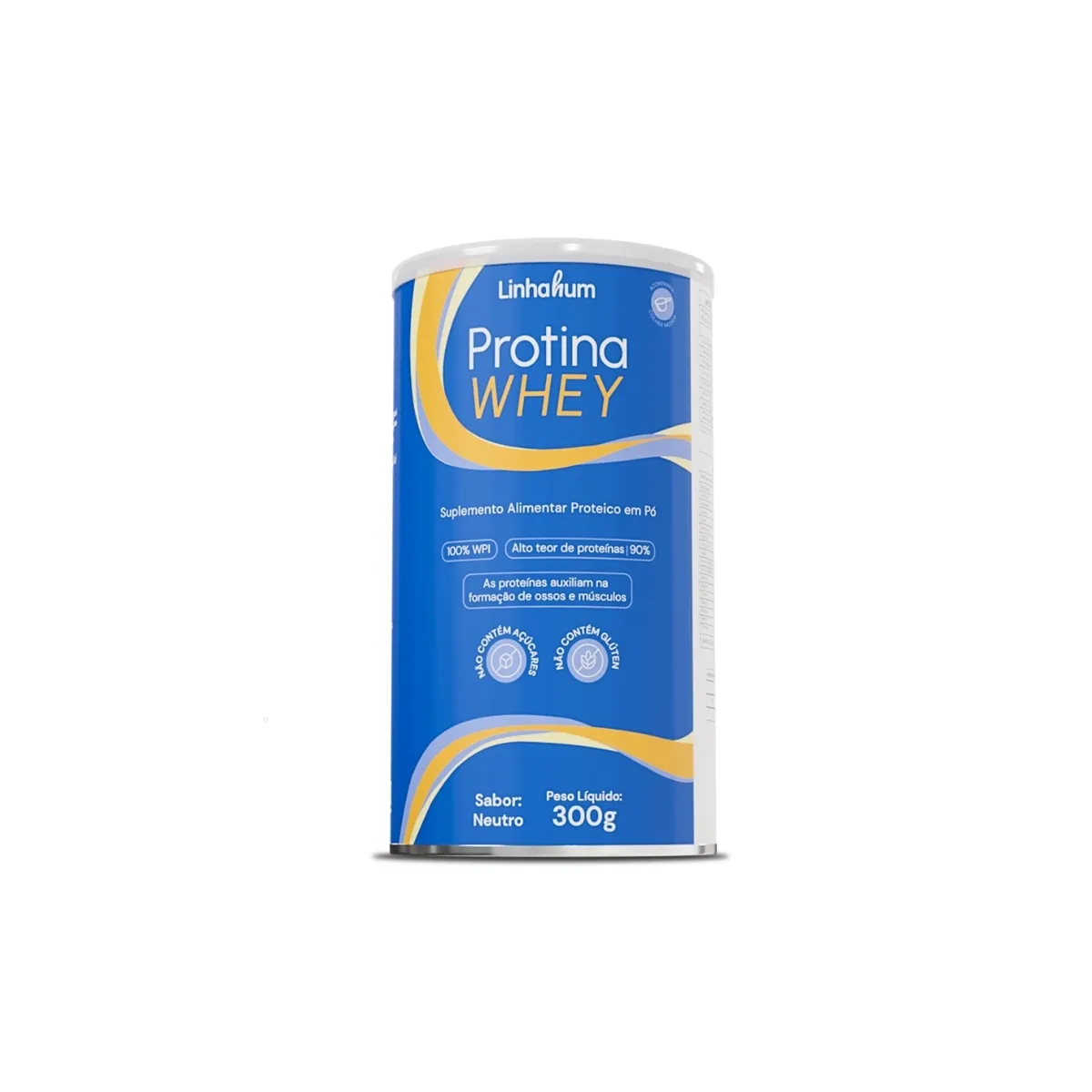 Protina Whey LinhaHum 300g é um suplemento alimentar proteico em pó sabor neutro.