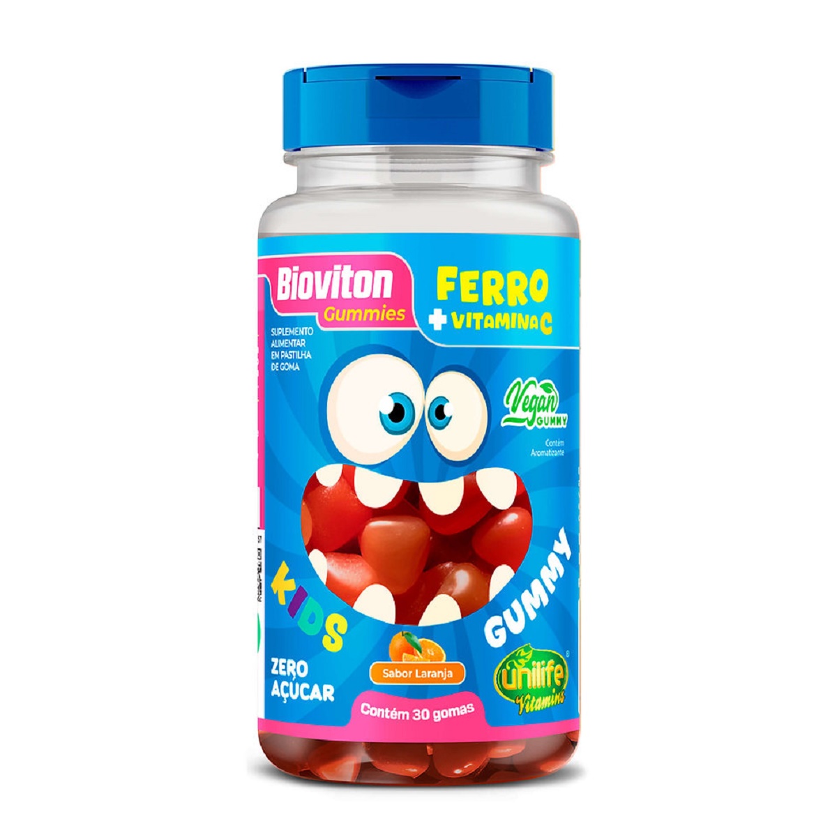 Bioviton Gummies Ferro + Vit C Kids Sabor Laranja Unilife em gomas mástigaveis é um suplemento infantil á base de vitamina C e ferro, que atua no fortalecimento da imunidade e previne anemia, para o crescimento saudável das crianças.