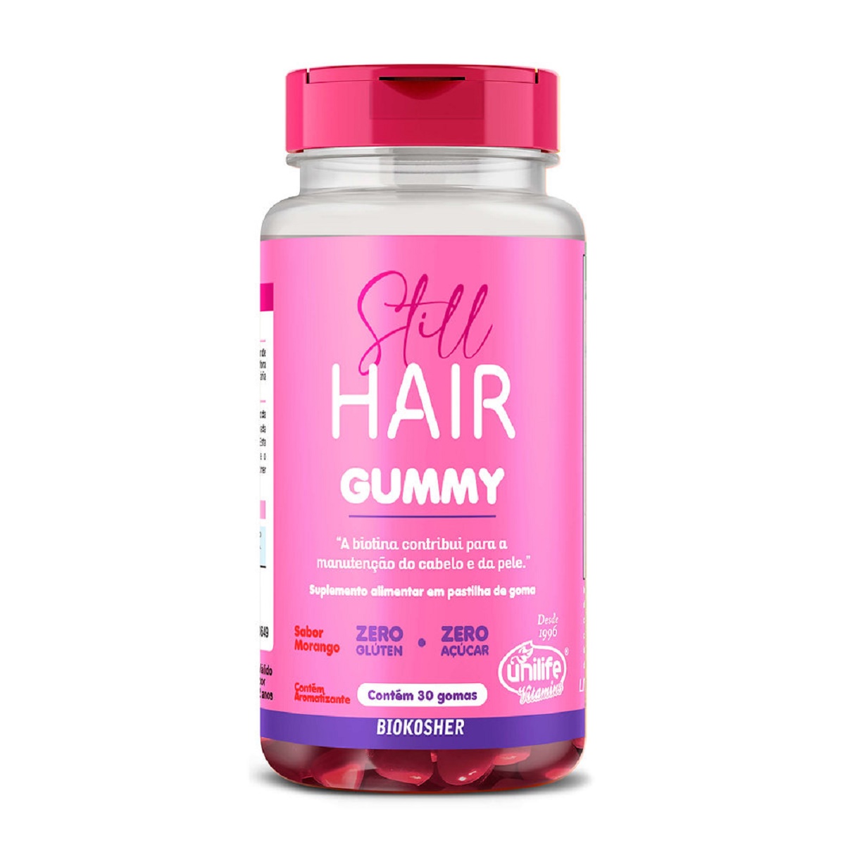 Hair Still Gummy Sabor Morango Unilife em pastilhas de gomas mastigáveis é um suplemento com uma fómula para a saúde capilar, contém biotina. Rico em vitaminas e minerais, que atuam no combate a queda dos cabelos. Cabelos fracos, com lento crescimento, cabelos quebradiços, hair still ajuda na nutrição da raiz até as pontas.