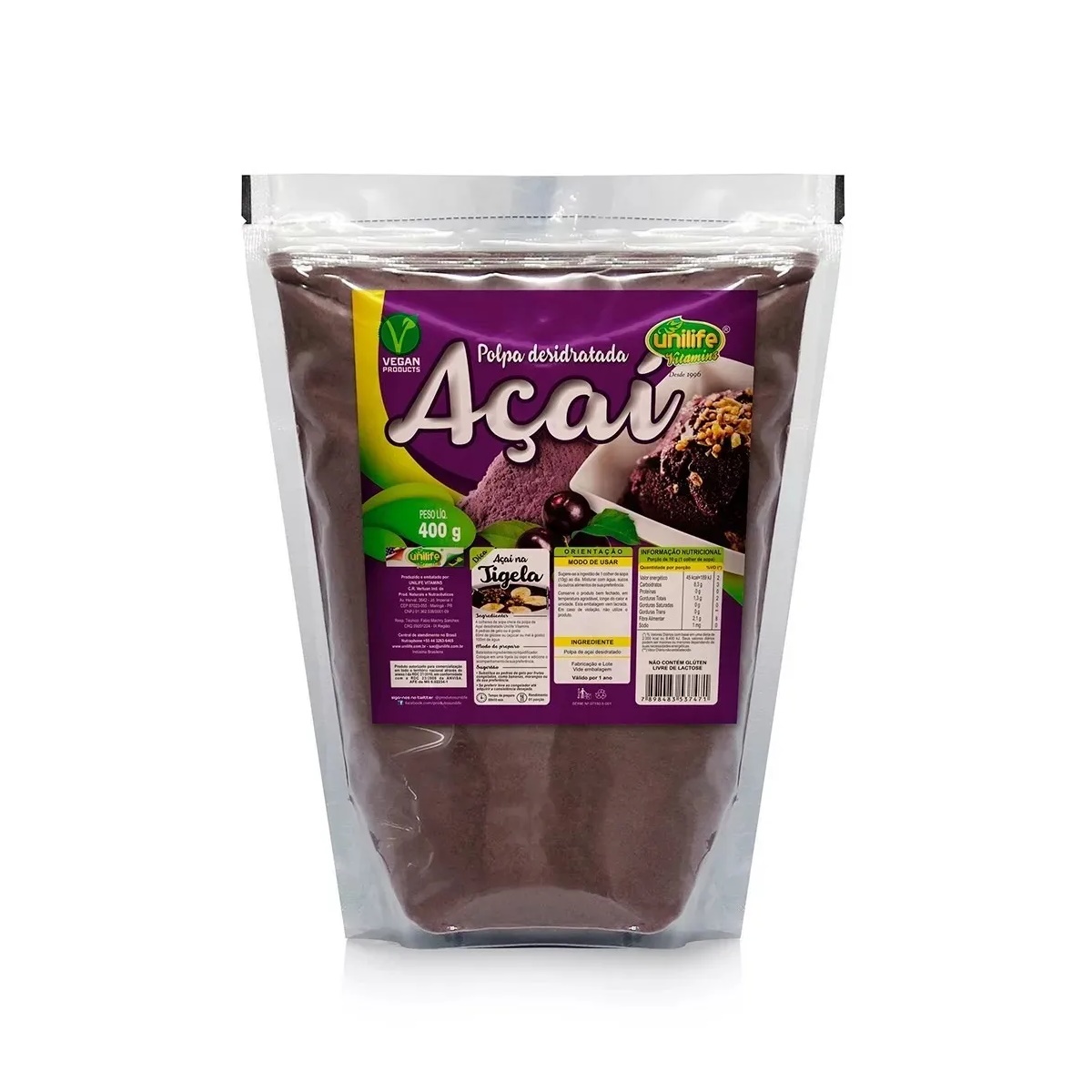 A Polpa de Açaí Unilife Vitamins em pó é um suplemento vegano, desenvolvido com a polpa de açaí desidratado. Possui uma fonte natural de fibras e tem propriedades nutricionais.